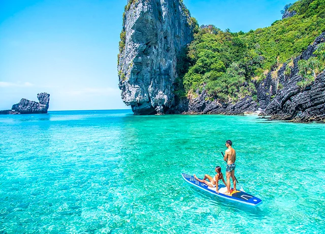 Visit the famous Phi Phi Islands, celebrated for clear turquoise waters and striking limestone cliffs