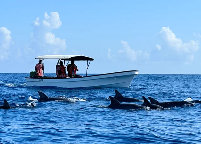 Sail to Mnemba Island on a private boat for a Dolphin Swim & Snorkeling experience.